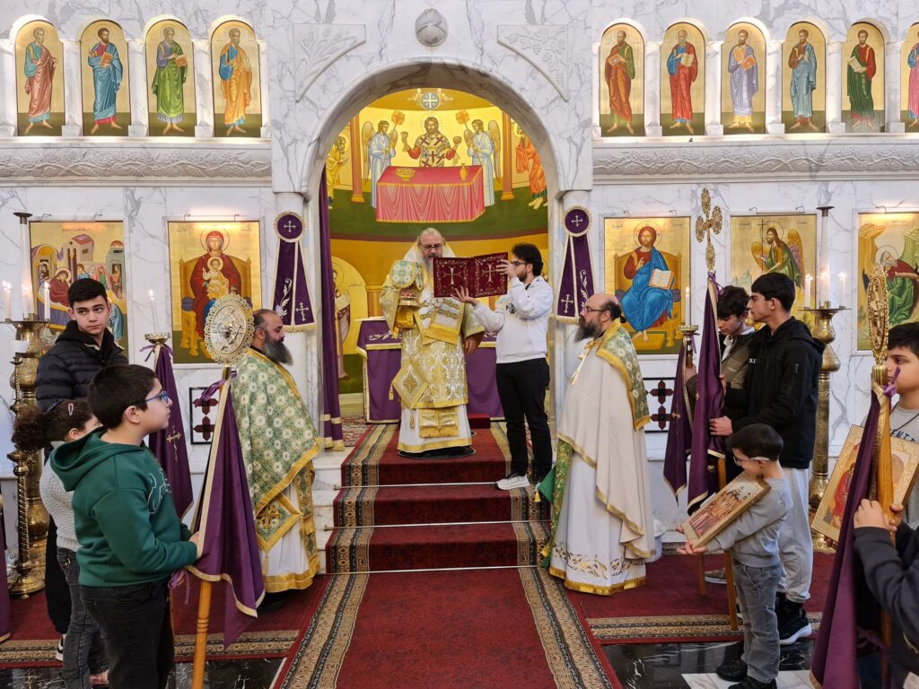 ترأس صاحب السيادة المتروبوليت أنطونيوس (الصوري) الجزيل الاحترام سحر وقداس الأحد الرابع من الصوم (أحد القدّيس يوحنا السلمي) في كاتدرائية ميلاد السيدة- قب الياس وذلك نهار الأحد الواقع فيه ٢٢ آذار ٢٠٢٦ وقد عاونه في الخدمة قدس الأرشمندريت بورفيريوس (إبراهيم) وقدس الأب سلوان(الخوري). بعد القداس الإلهي، التقى سيادته مع أبناء الرعية في قاعة الكنيسة حيث قطع قالب حلوى بمناسبة عيد الأمهات.
