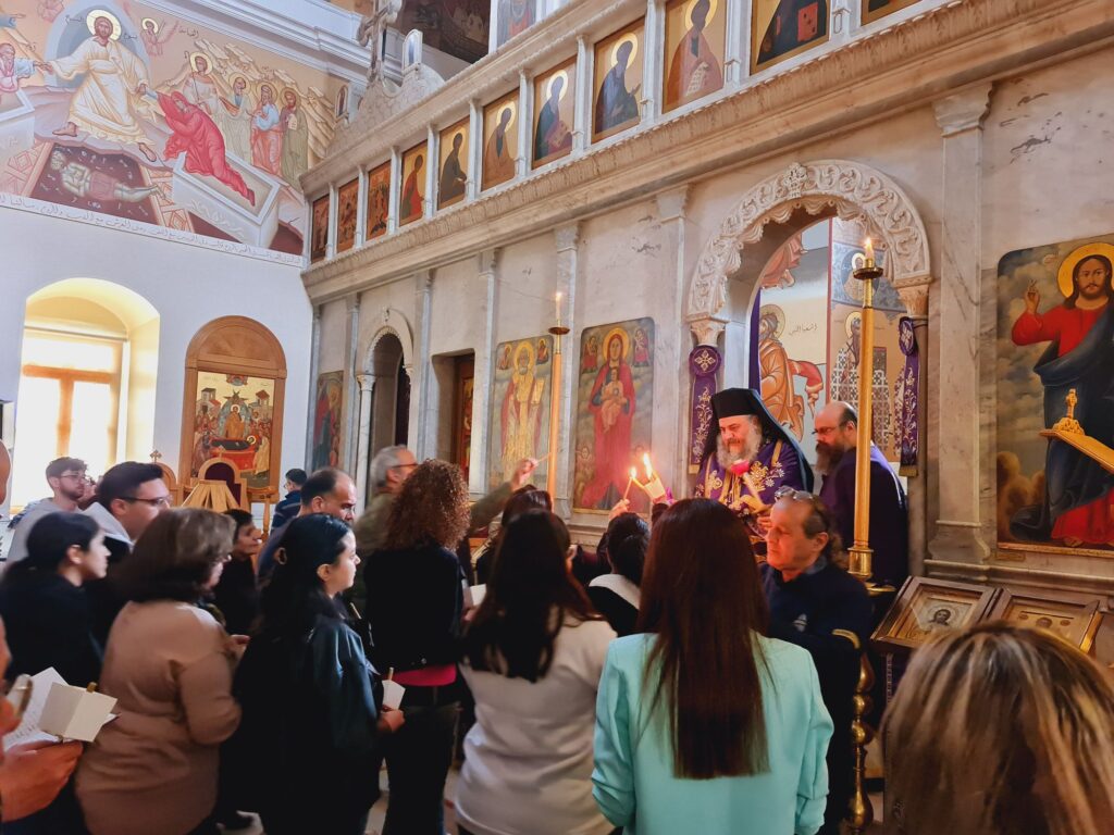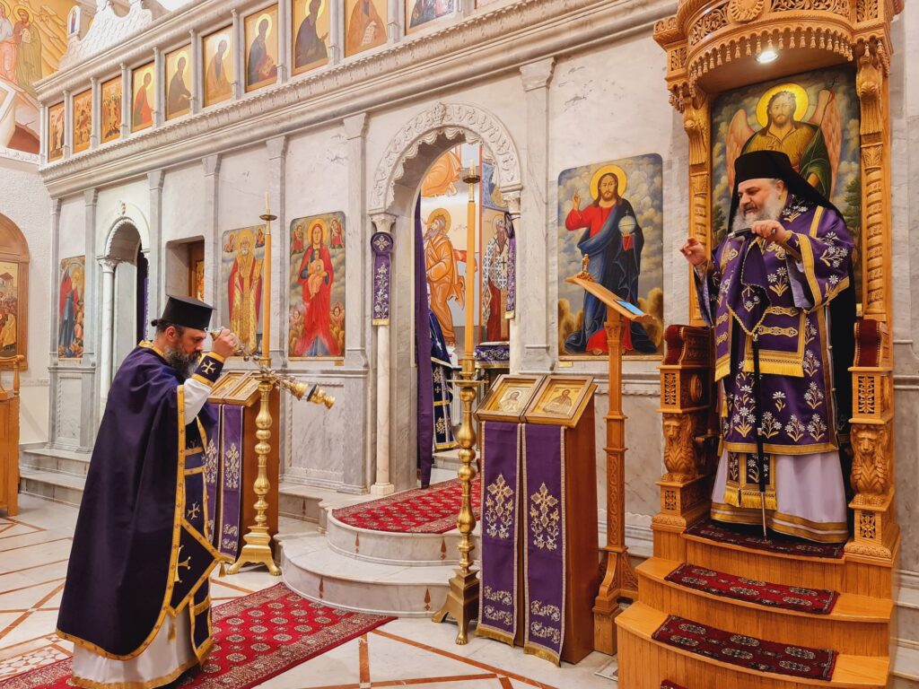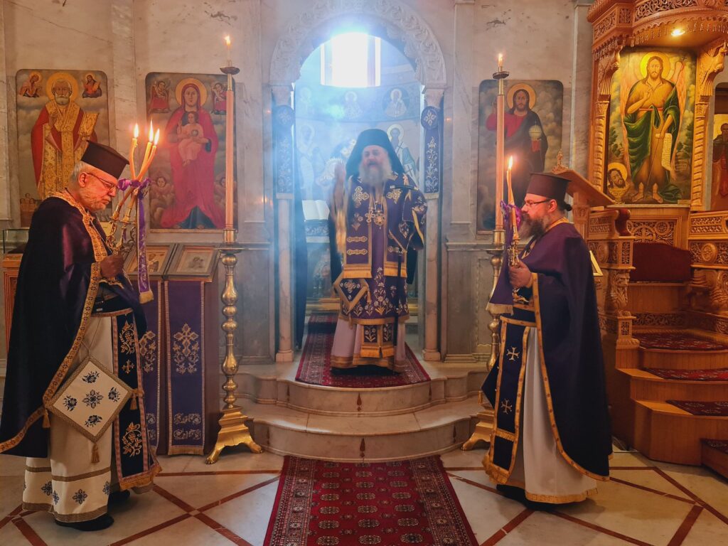 ترأس صاحب السّيادة المتروبوليت أنطونيوس(الصوري) الجزيل الاحترام صلاة الساعات والقداس السابق تقديسه في كاتدرائية القديس نيقولاوس العجائبي- حي الميدان وذلك صباح نهار الإثنين الواقع فيه ٦ نيسان ٢٠٢٦. وقد عاونه في الخدمة قدس المتقدم في الكهنة الأب مارون (جبور) وقدس الأب سلوان (الخوري) بحضور قدس الأرشمندريت أرمياء (عزام) الوكيل العام.